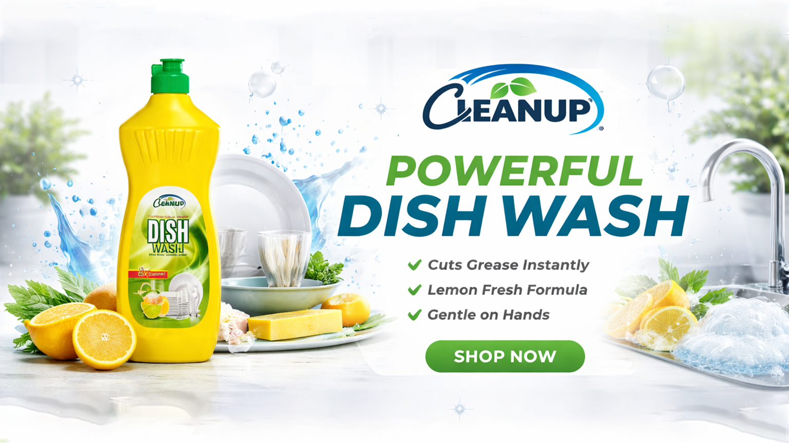 Dish Wash Liquid | Powerful Grease Cutting | Fresh Lemon Clean